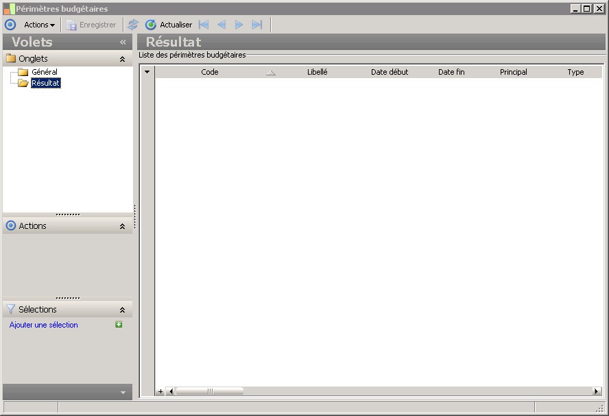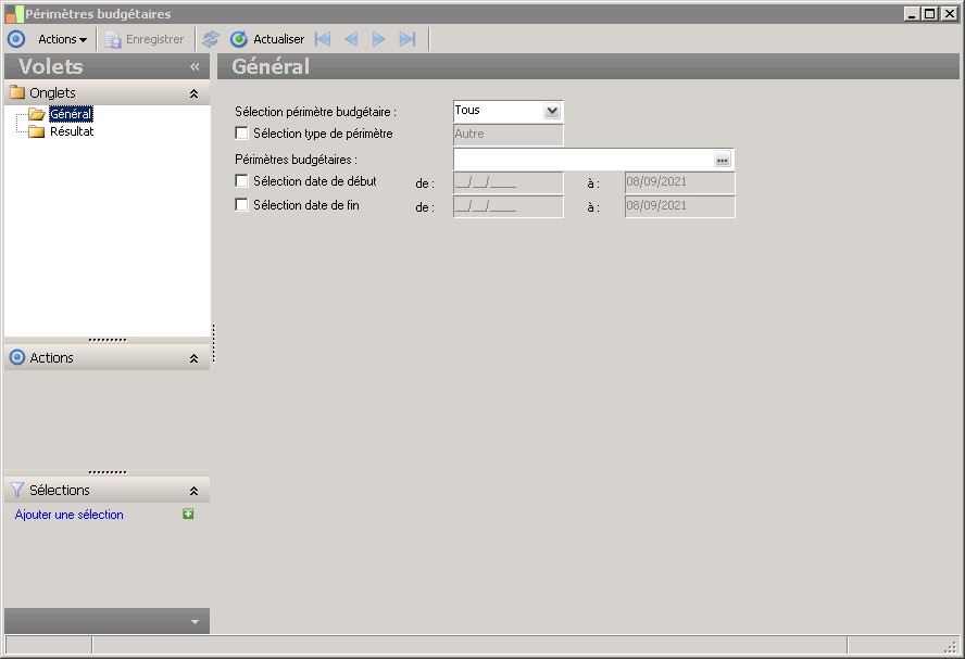 (Sage FRP 1000 Comptabilité) Menu Budget > Paramètres > Périmètres budgétaires