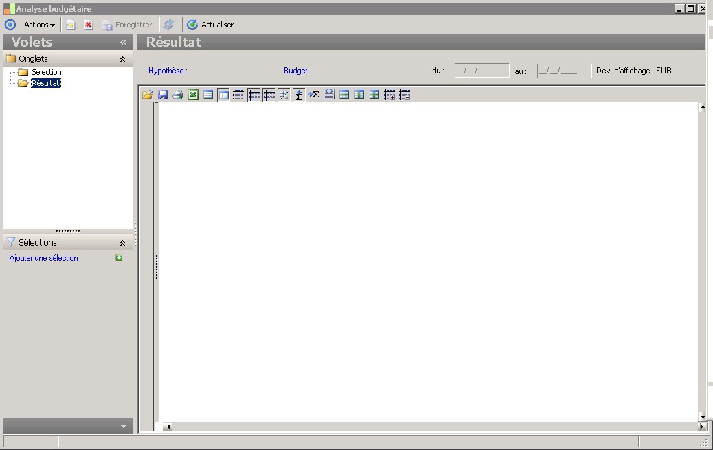 (Sage FRP 1000 Comptabilité) Menu Budget > Analyses > Analyse budgétaire