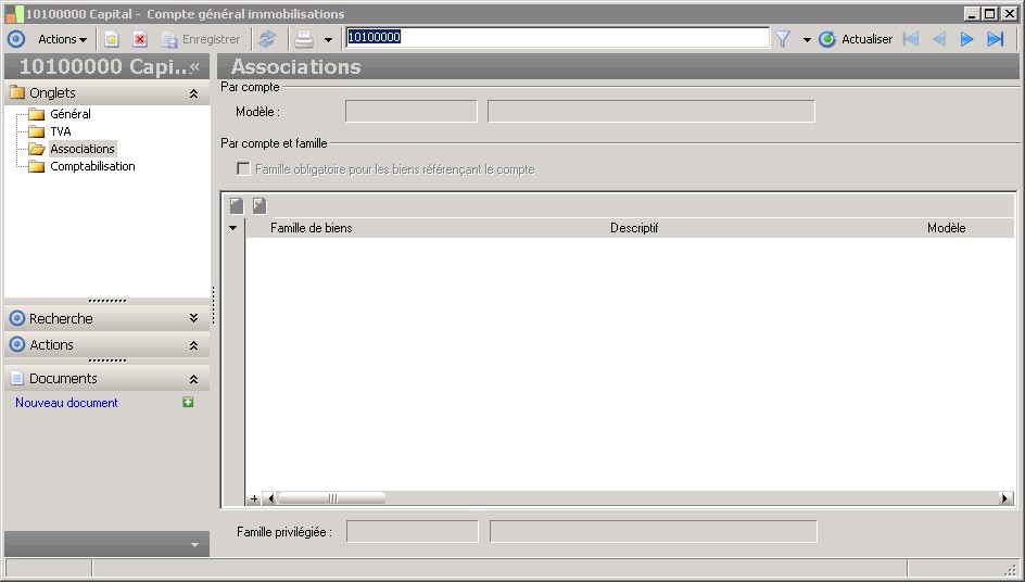Il est possible d'associer une famille de bien privilégiée à un compte général. |