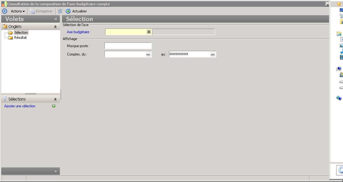 (Sage FRP 1000 Comptabilité) Menu Budget > Paramètres > Consultation de la composition de l'axe budgétaire compte