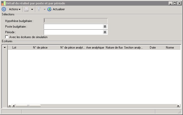 (Sage FRP 1000 Comptabilité) Menu Budget >  Analyses >  Détail du réalisé par poste et par période