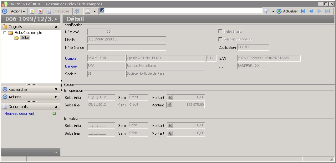 L'attribut indique si le relevé de compte est saisi. Si l'élément n'est pas coché, il s'agit d'un relevé de compte issu du traitement des relevés. |