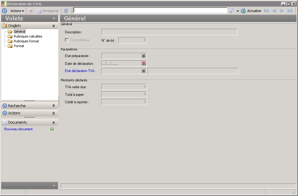 Etat déclaration TVA utilisé pour la génération de la déclaration de TVA. |