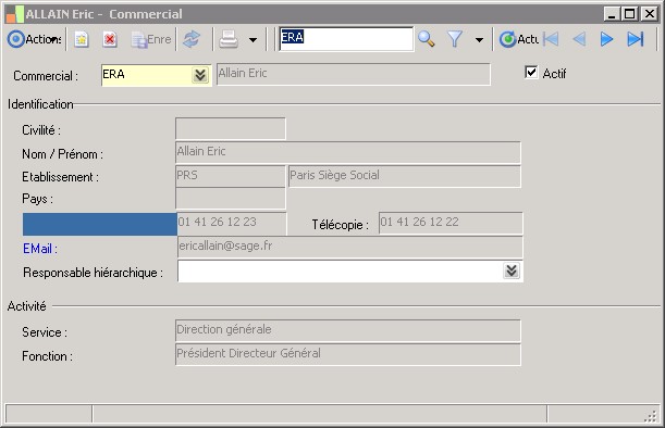 Enregistrez dans cette zone le nom du responsable hiérarchique de la personne en cours de saisie. |