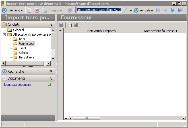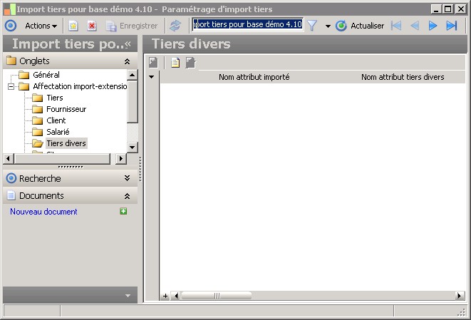 (Sage FRP 1000 Comptabilité) Menu Banque Paiement > Initialisation > Paramétrage d'import tiers