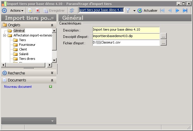 Cette zone permet de choisir le descriptif d'importation qui sera utilisé par ce paramètre d'import (traitement unitaire). |
