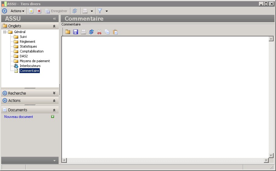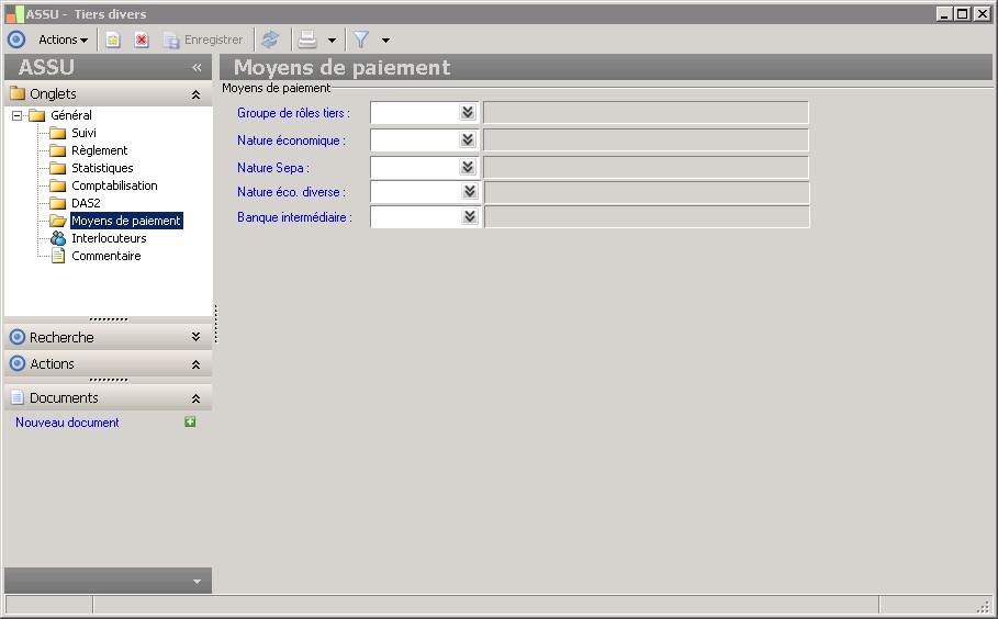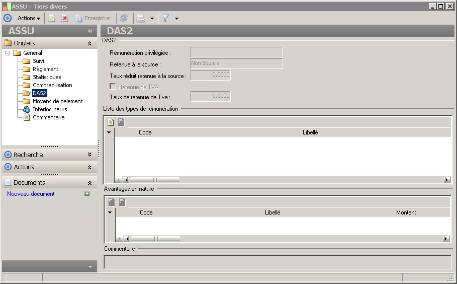 Dans la fenêtre Tiers divers , la présence des dossiers décrits dans ce contexte dépend des applications installées. |