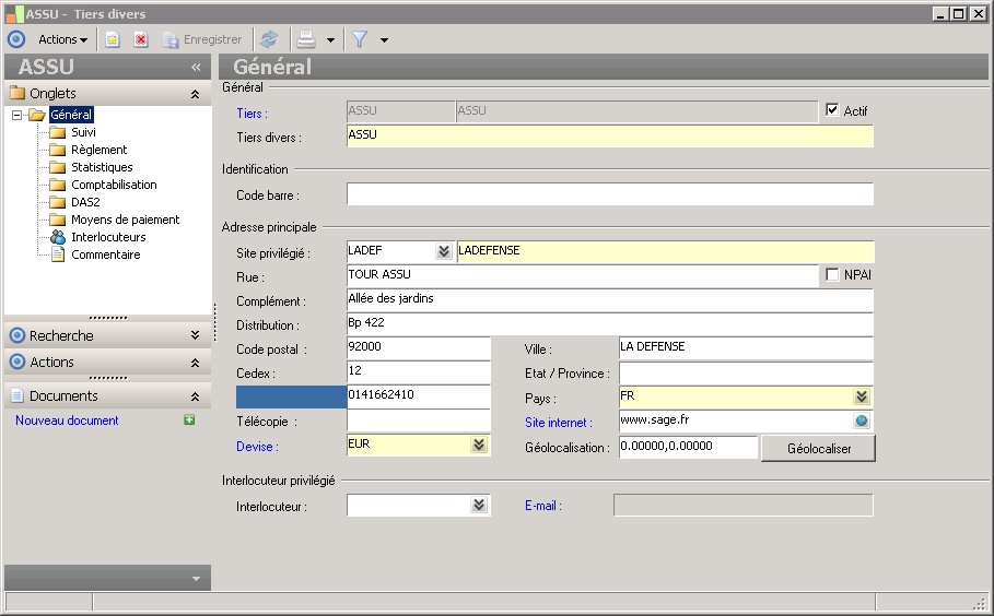 La raison sociale donne l'identité du tiers. |