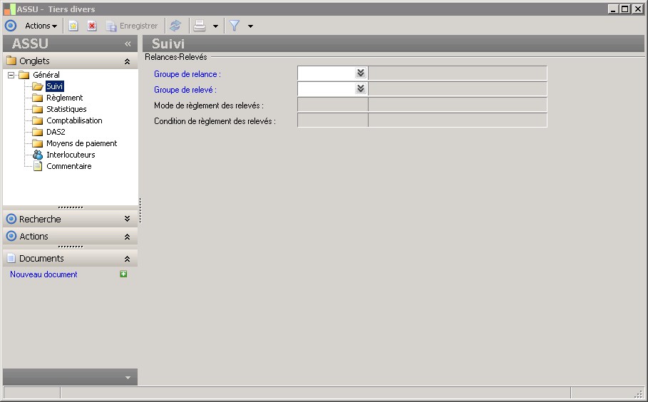 Lorsqu'un groupe de relevé est indiqué dans la fiche du rôle tiers, un mode de règlement des relevés doit être indiqué. Il s'agit du mode de règlement qui sera associé aux relevés générés. |