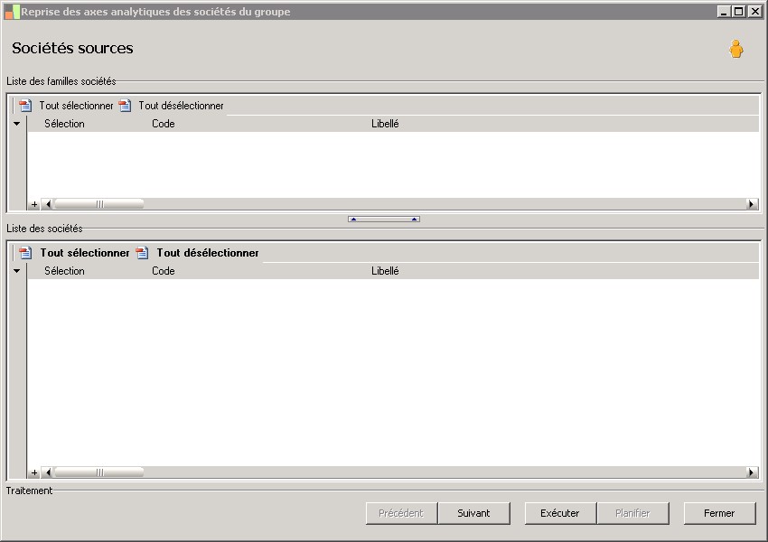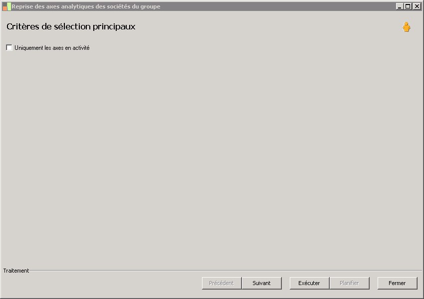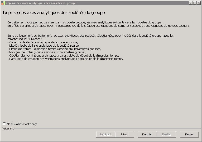 Ce traitement permet de récupérerdans la société groupe, les axes analytiques existants dans les sociétés du groupe et qui seront nécessaires lors de la création des rubriques decomptes sections et des rubriques de natures sections.