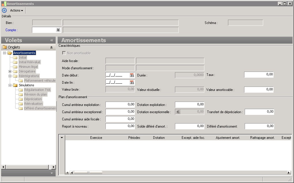 Cette zone correspond au cumul des amortissements exceptionnels (Rattrapage d'amortissement). Il est mis à jour par le traitement de clôture en y ajoutant le montant du rattrapage d'amortissement de l'exercice clôturé. |