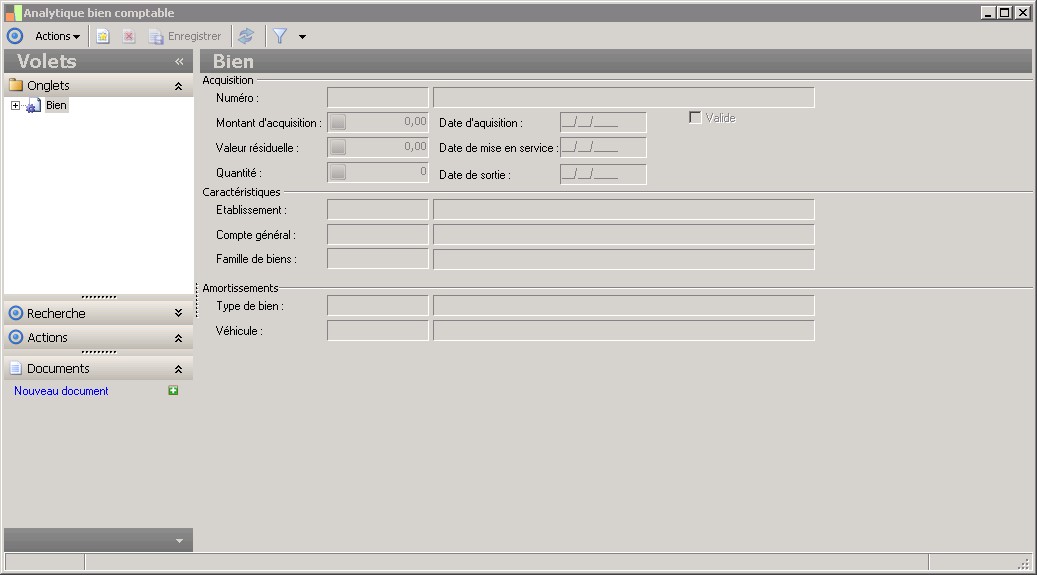 Cette zone permet d'indiquer le véhicule correpsondant au bien comptable. |