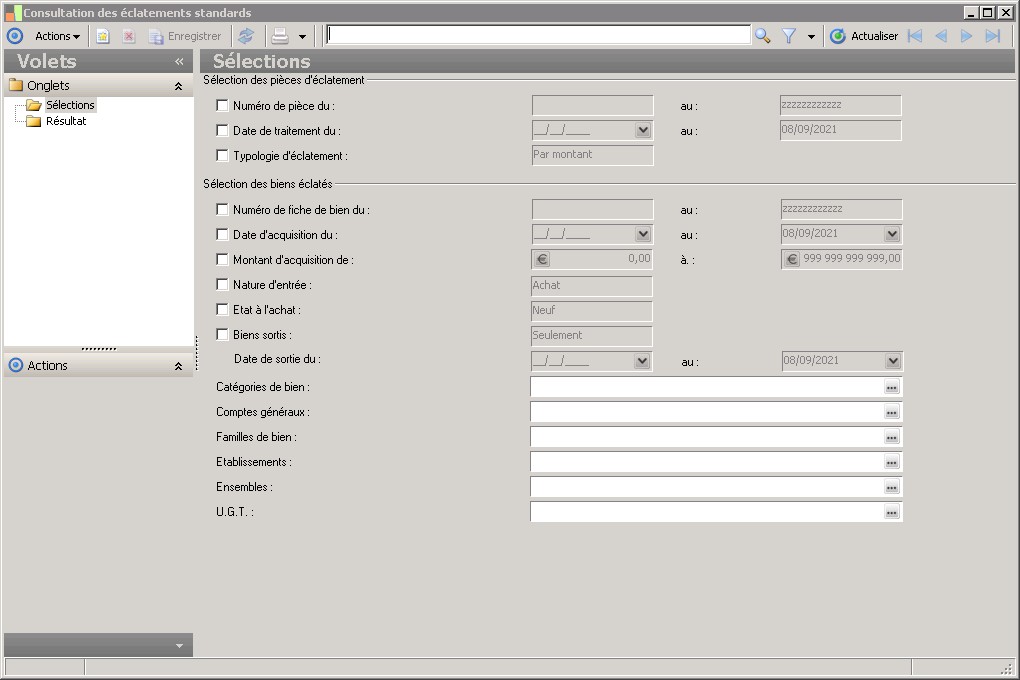(Sage FRP 1000 Comptabilité) Menu Immobilisations > Suivi comptable > Eclatement > Consultation des éclatements standards