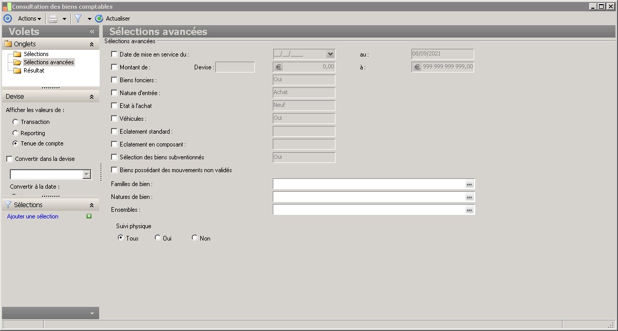ce paramètre permet de lister les biens comptables qui font l'objet d'un suivi physique. |