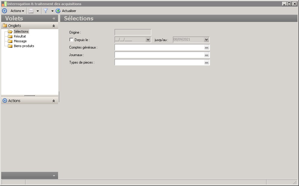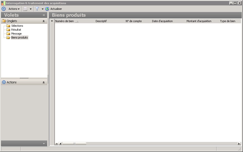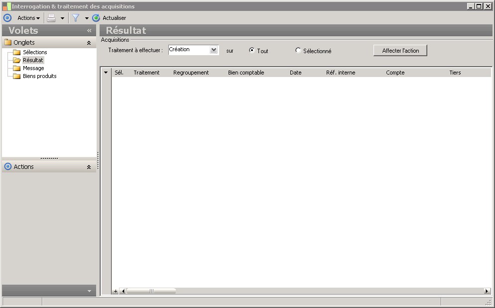 (Sage FRP 1000 Comptabilité) Menu Immobilisations > Suivi comptable > Acquisition > Interrogation & traitement des acquisitions