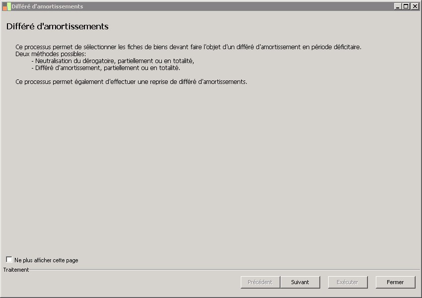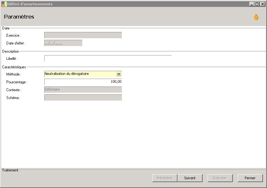 Cette zone qui n'est pas modifiable, indique le contexte dans lequel est géré le différé d'amortissement. |
