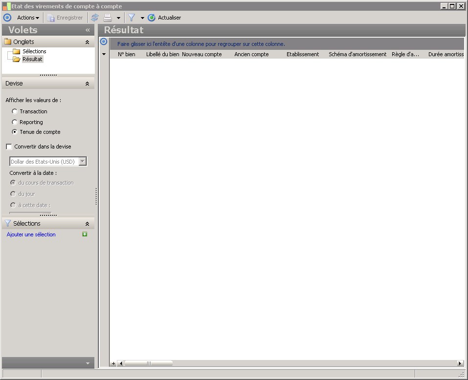(Sage FRP 1000 Comptabilité) Menu Immobilisations > Suivi comptable > Imputation > Etat des virements de compte à compte