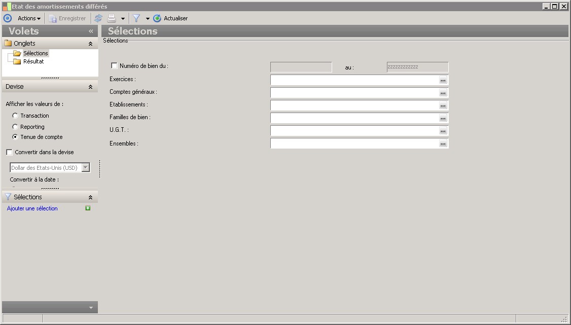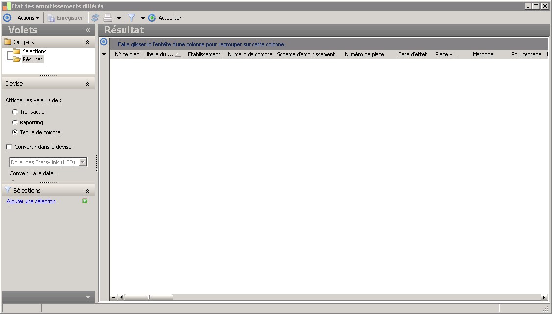 (Sage FRP 1000 Comptabilité) Menu Immobilisations > Suivi comptable > Plan d'amortissement > Etat des amortissements différés