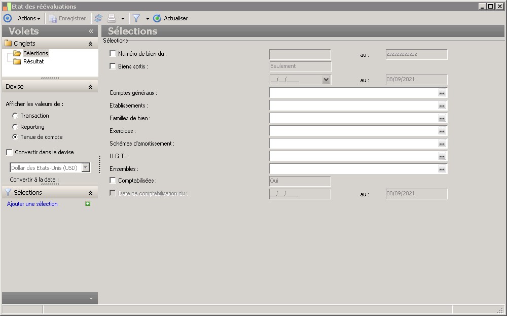 Ce paramètre vous permet de limiter la sélection des biens afin d'afficher :- uniquement les mouvements comptabilisés- ou uniquement les mouvements non comptabilisés. |