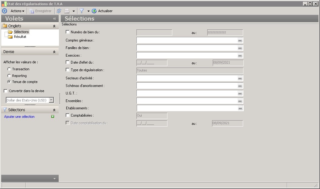 Ce paramètre permet de choisir le type de régularisation de TVA à sélectionner. |