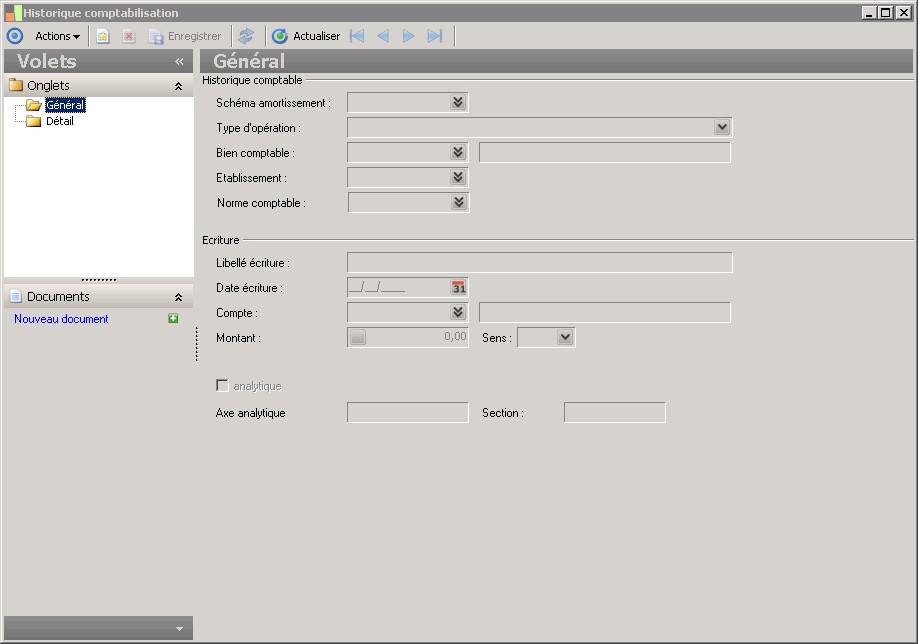 (Sage FRP 1000 Comptabilité) Menu Immobilisations > Arrêtés comptables > Historique comptabilisation