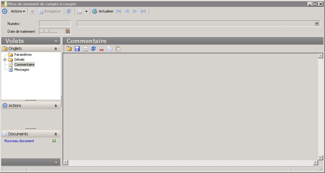 Cette zone permet de saisir un commentaire sur la pièce de mouvement. |