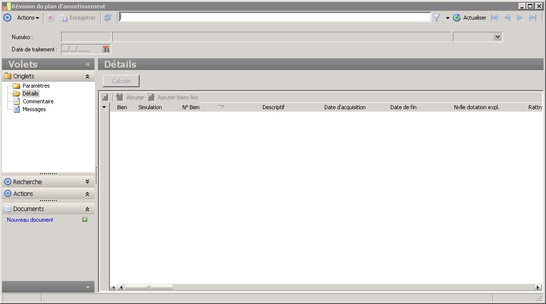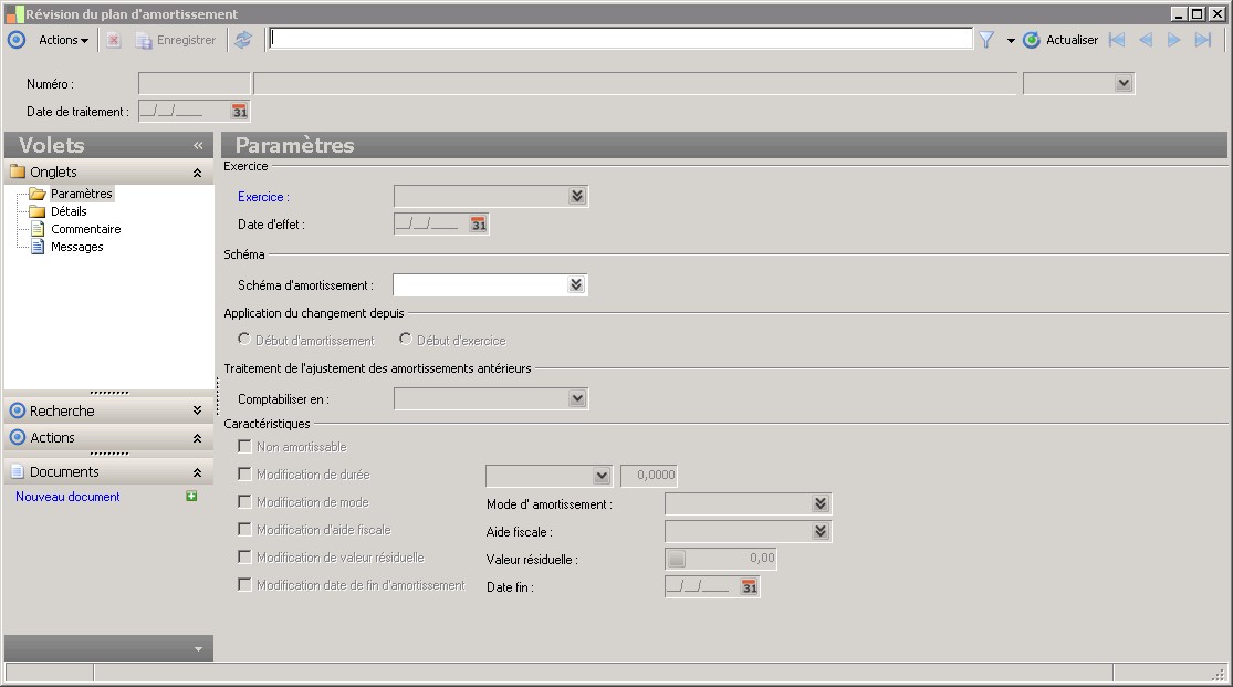 (Sage FRP 1000 Comptabilité) Menu Immobilisations > Suivi comptable > Biens > Révision du plan d'amortissement