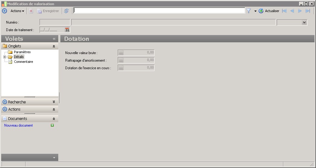 Cette zone correspond au montant du rattrapage d'amortissement suite à une modification de valorisation. |
