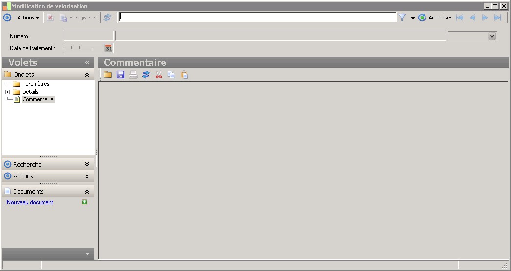 Cette zone indique le statut de validation de la pièce. Cette information n'est jamais saisissable et est modifiable via une action dédiée. |