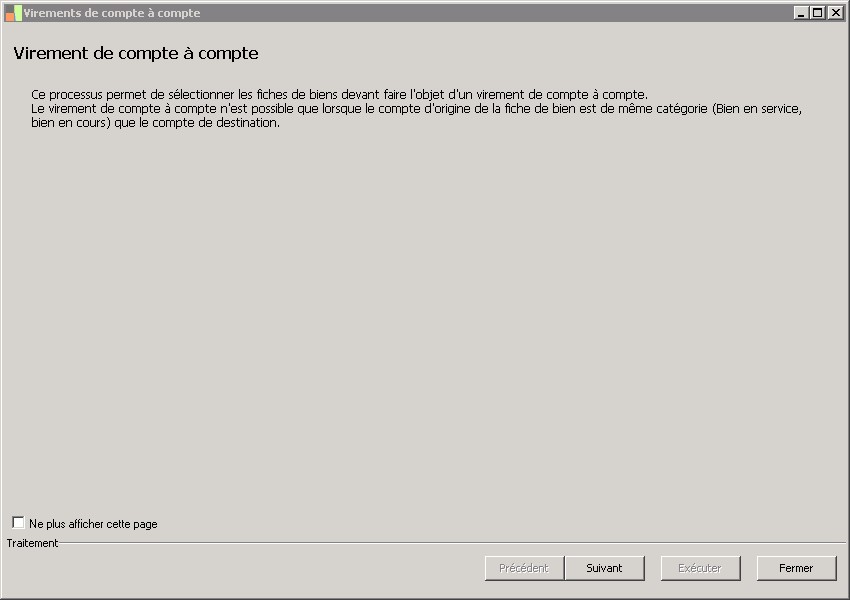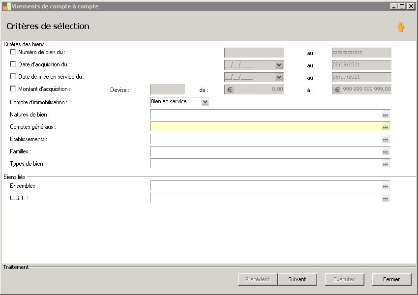 (Sage FRP 1000 Comptabilité) Menu Immobilisations > Suivi comptable > Imputation > Virements de compte à compte