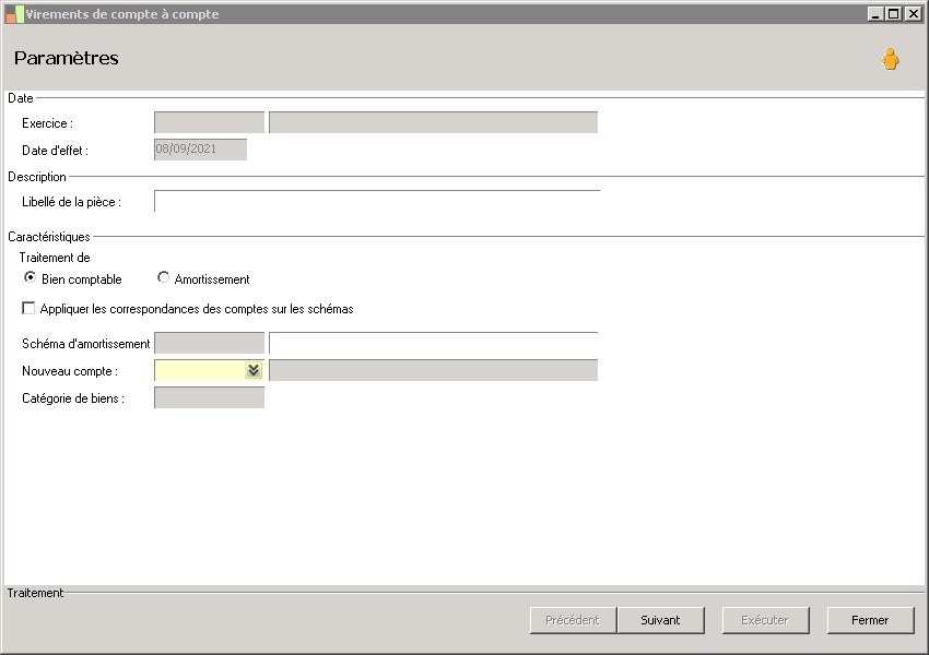 Cette option permet d'effectuer le changement de compte au niveau bien ou au niveau d'un schéma d'amortissement. |