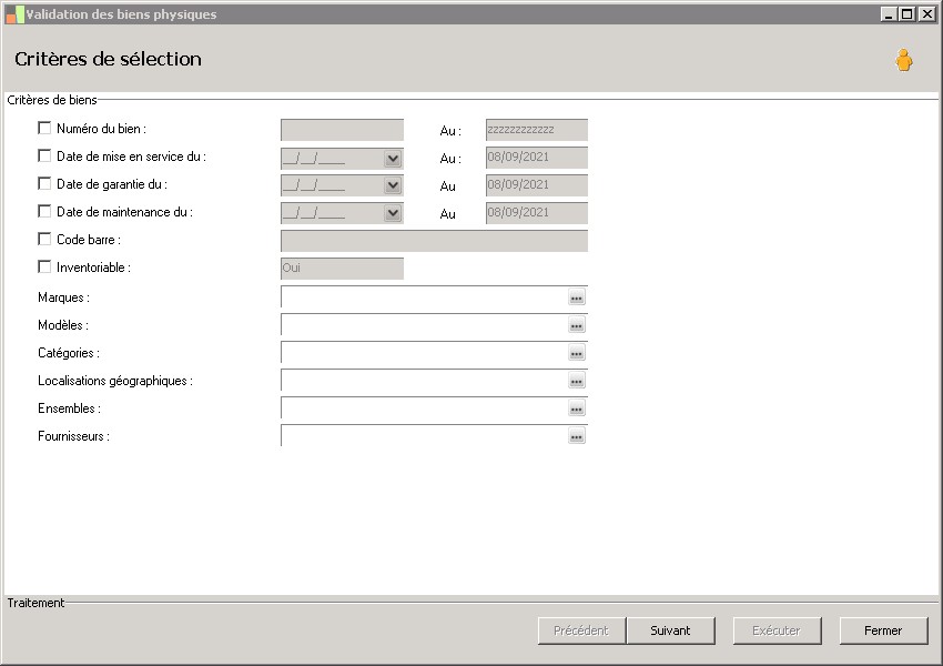 Ce paramètre permet de faire une sélection sur les biens physiques inventoriables (si la case est cochée). |