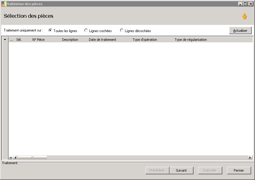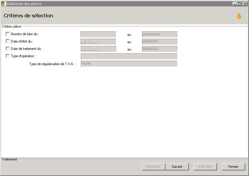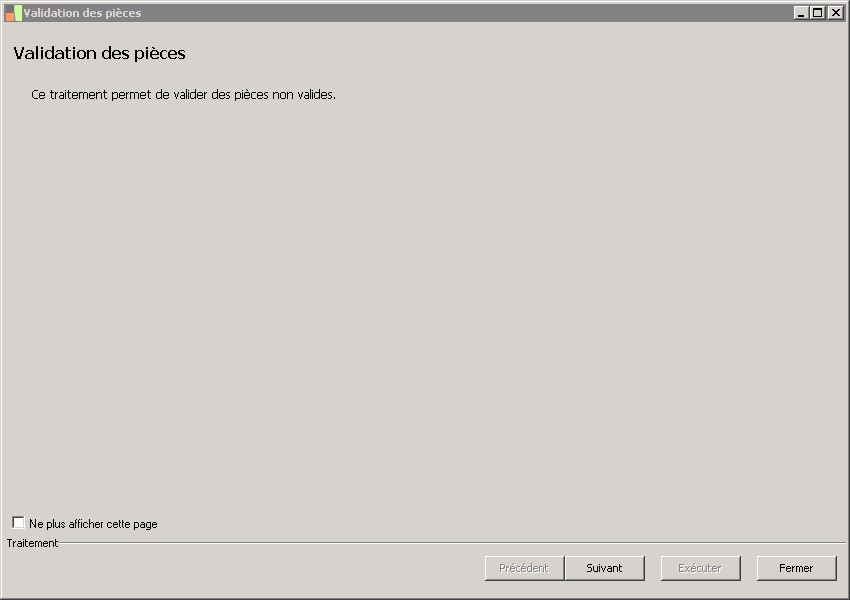 (Sage FRP 1000 Comptabilité) Menu Immobilisations > Suivi comptable > Validation > Validation des pièces