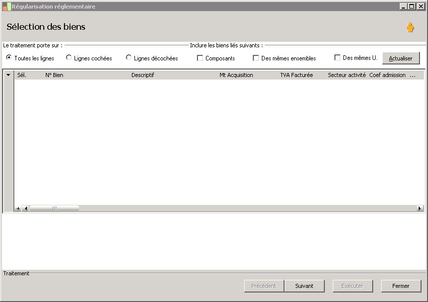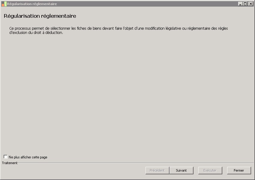 (Sage FRP 1000 Comptabilité) Menu Immobilisations > Suivi comptable > T.V.A. > Régularisation réglementaire
