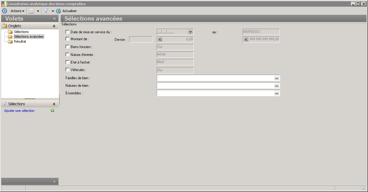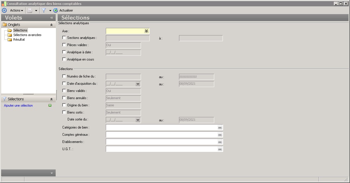 Ce paramètre vous permet de limiter la sélection des biens afin d'afficher :- uniquement les biens avec pièces analytiques validées- ou uniquement les biens avec pièces analytiques non validées. |