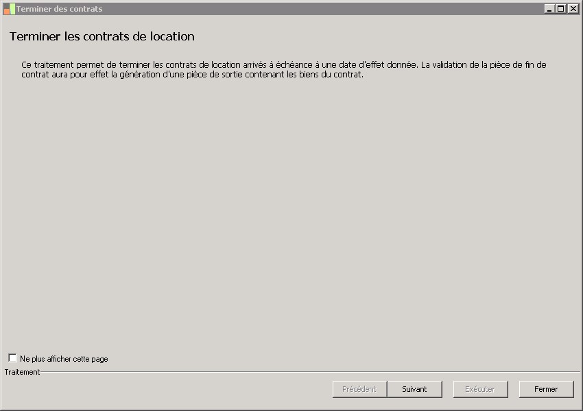 (Sage FRP 1000 Comptabilité) Menu Immobilisations > Contrats > Terminer des contrats