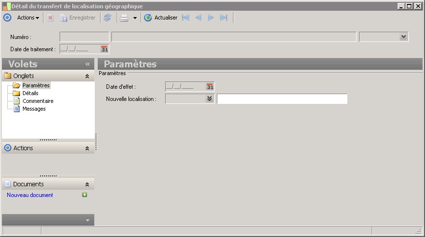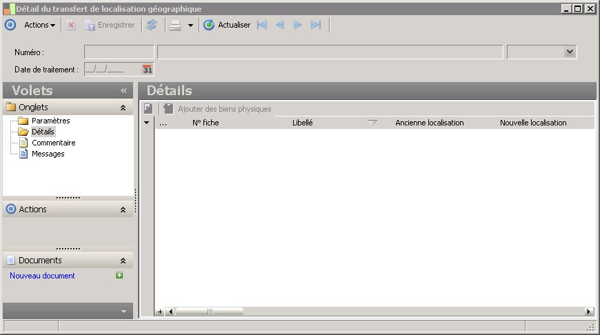(Sage FRP 1000 Comptabilité) Menu Immobilisations > Suivi physique > Détail du transfert de localisation géographique