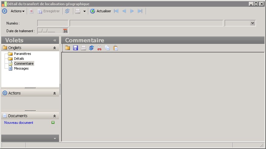 Cette zone permet de saisir un commentaire sur la pièce de mouvement. |