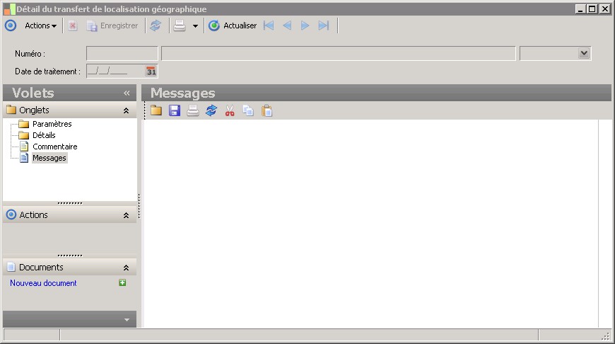 Cette zone indique le statut de validation de la pièce. Cette information n'est jamais saisissable et est modifiable via une action dédiée. |