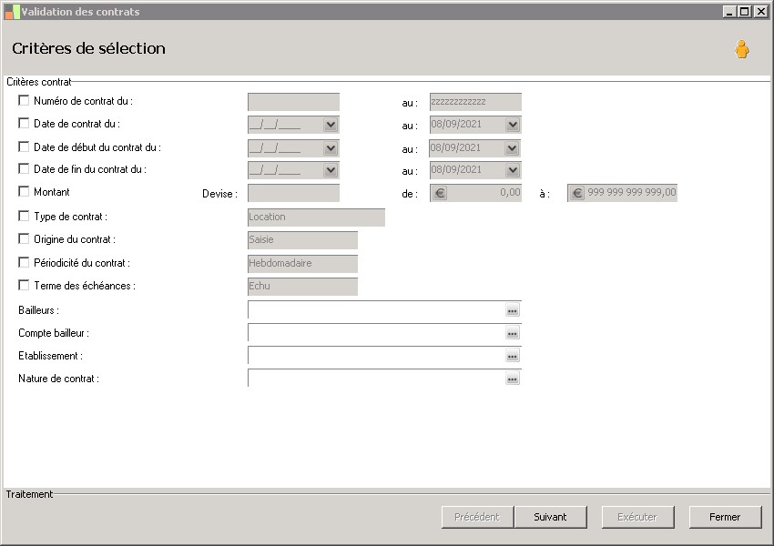 Ce paramètre permet de faire une sélection sur la date de contrat (si la case est cochée). |