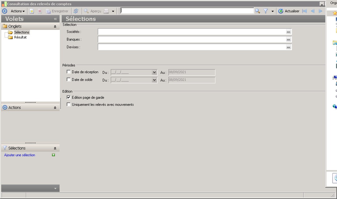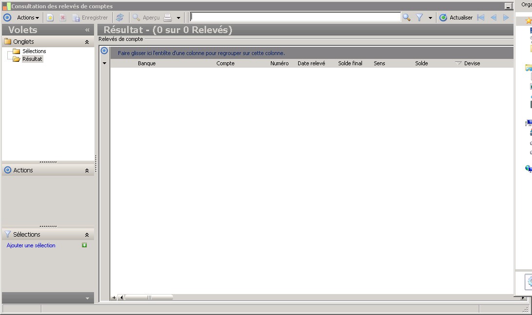 (Sage FRP 1000 Comptabilité) Menu Banque Paiement > Relevés et Notifications > Relevés de comptes > Consultation des relevés de comptes