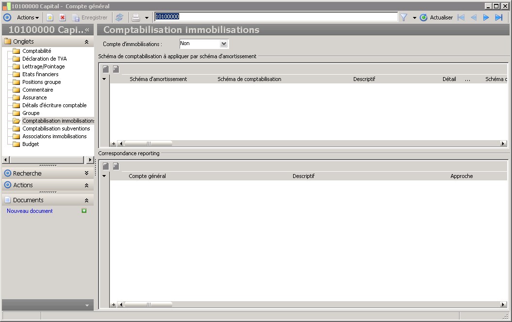 Cette zone permet d'indiquer si le compte est un compte d'immobilisations ou pas, et dans l'affirmative si c'est un compte d'immobilisations en cours ou d'immobilisations en service. |