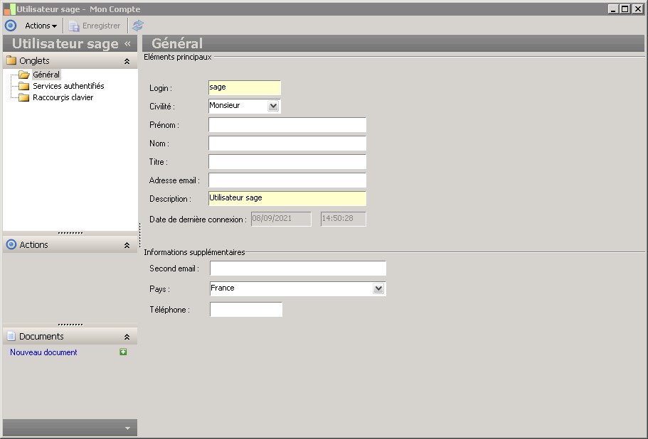 (Sage FRP 1000 Comptabilité) Menu Notes de Frais > Fichier > Mon Compte