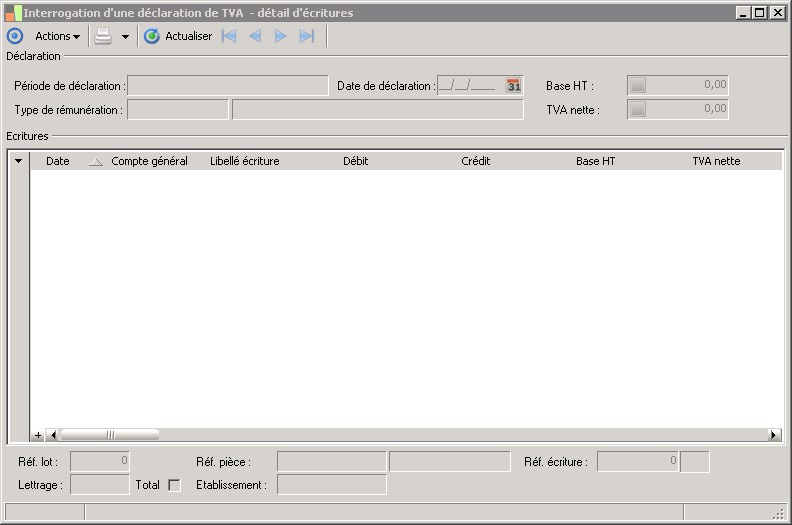(Sage FRP 1000 Comptabilité) Menu Comptabilité > Générale > T.V.A. > Interrogation d'une déclaration de TVA - détail d'écritures