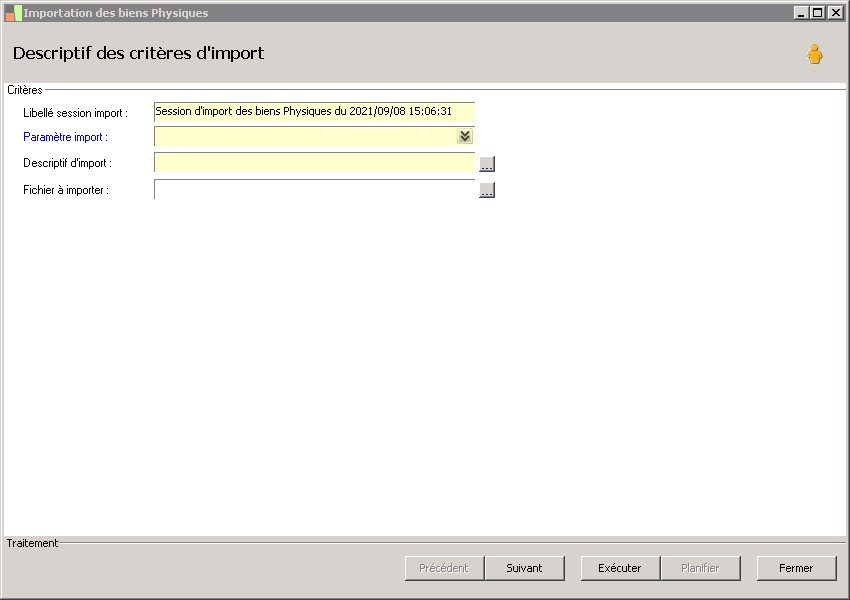 (Sage FRP 1000 Comptabilité) Menu Immobilisations > Initialisation > Import du suivi physique > Importation des biens Physiques