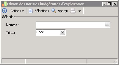 (Sage FRP 1000 Comptabilité) Menu Budget > Paramètres > Edition des natures budgétaires d'exploitation