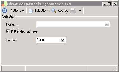 (Sage FRP 1000 Comptabilité) Menu Budget > Paramètres > Edition des postes budgétaires de TVA