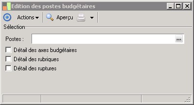 (Sage FRP 1000 Comptabilité) Menu Budget > Paramètres > Edition des postes budgétaires